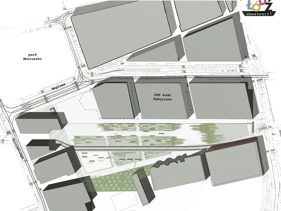 This project is about a temporary public space in the center of Lodz, near the railway train station. The terrain is going to be constructed in the next ten years with new buildings. Meanwhile, this project will give public access to this terrain by offering an evolving park with different functions.