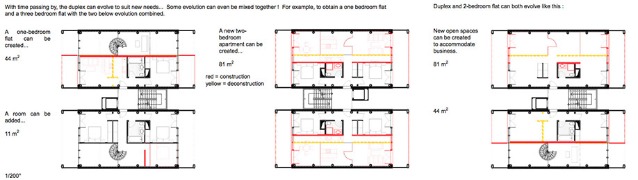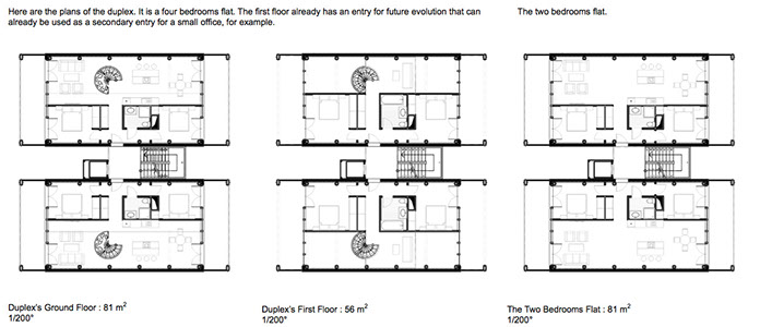 Each apartment has two large terraces. The buildings’ roof can also be used as a terrace. The center of the block is open to the public, to meet and play sports. Thanks to the wide diversity of housings and evolution the project is able to achieve, from one bedroom flat to a five bedrooms flat, or from small to big offices, different kinds of people (families, singles, elderly people, students) can live in this project. The more people are different, the more they can learn from each other and help each other.